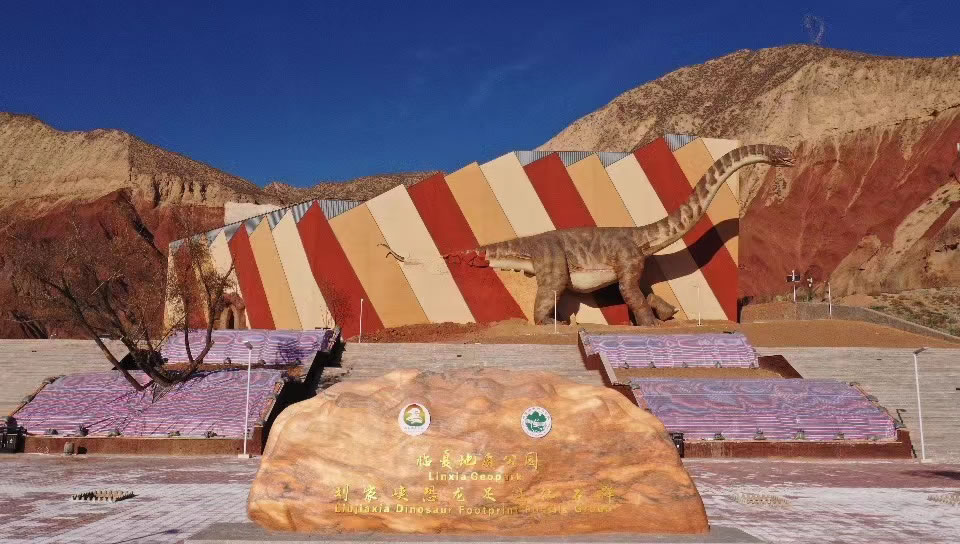 • 核心特色:以白堊紀(jì)恐龍足印群為核心,揭露面積2800平方米,含11類150組1831個足跡,最大蜥腳類足印長150厘米、寬120厘米,步幅375厘米,創(chuàng)世界之最。配套恐龍臥跡、尾部拖痕、糞跡化石及蘭州龍、劉家峽黃河巨龍等骨骼化石,地質(zhì)博物館、5D影院、游步道等設(shè)施完善,兼具科研、科普與旅游價值。