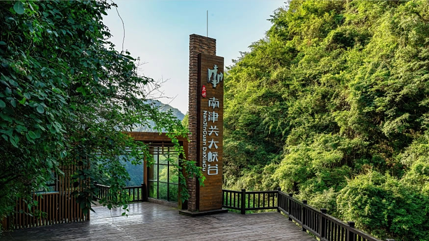 南津關(guān)大峽谷風(fēng)景區(qū)位于湖北省宜昌市夷陵區(qū)西陵峽北岸的下牢溪流域,總面積108平方公里,涉及小溪塔、樂(lè)天溪、黃花三個(gè)鄉(xiāng)鎮(zhèn),距宜昌市中心城區(qū)10公里、三峽大壩12公里。該景區(qū)屬喀斯特地貌,以"三峽、六瀑、九道關(guān)、十八潭、三十六峰、七十二泉、一百零八珍稀生物"自然景觀體系著稱,由紅巖峽、飛天峽、臘梅峽三段峽谷組成,分布蟾潭瀑布、二跌水瀑布等瀑布群,峽谷最窄處僅3米,崖壁最高達(dá)250米。谷內(nèi)保存108種珍稀瀕危樹種及近200種野生動(dòng)物,是國(guó)家楠木種源基地和野生臘梅集中分布區(qū)。谷底留存古驛道、古棧道遺跡,相傳大禹之父鯀曾在此治水。景區(qū)通過(guò)林權(quán)補(bǔ)貼機(jī)制與3367戶農(nóng)戶建立生態(tài)保護(hù)合作,開發(fā)7.8公里康養(yǎng)棧道及20公里越野跑線路。2019年獲評(píng)“中國(guó)森林氧吧”和“全國(guó)森林康養(yǎng)基地試點(diǎn)建設(shè)單位”。景區(qū)保留核心區(qū)原始風(fēng)貌,設(shè)置棧道、繩索等設(shè)施,開展峽谷探險(xiǎn)、漂流等專項(xiàng)旅游項(xiàng)目,入選中國(guó)十大戶外探險(xiǎn)線路。
