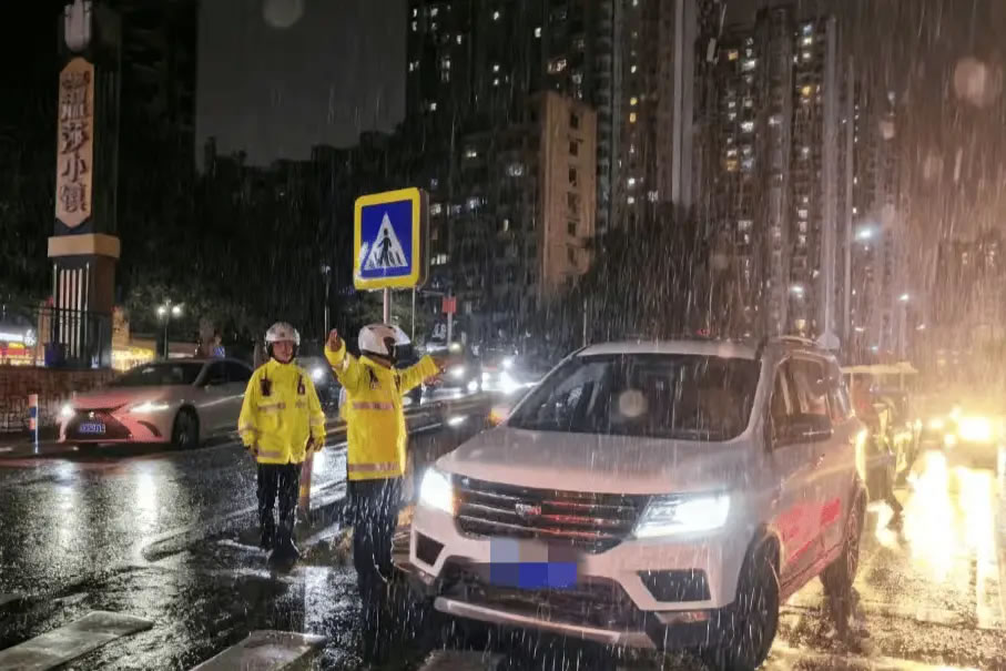 在此過程中,民警、輔警在嚴(yán)謹(jǐn)安保的同時,還用心提供便民服務(wù)。期間,他們耐心幫助小球迷穿好雨衣、協(xié)助群眾尋找遺失物品、攙扶行動不便者通過積水路段,用實(shí)際行動為賽場增添溫暖。
