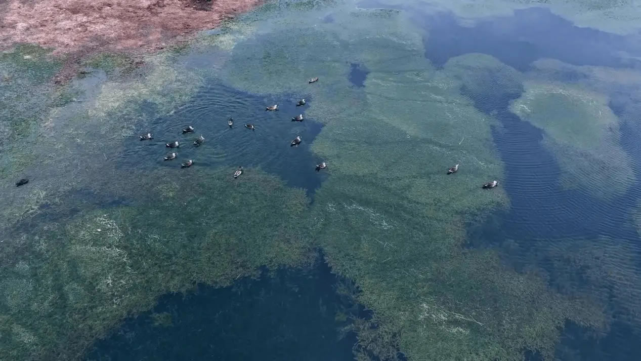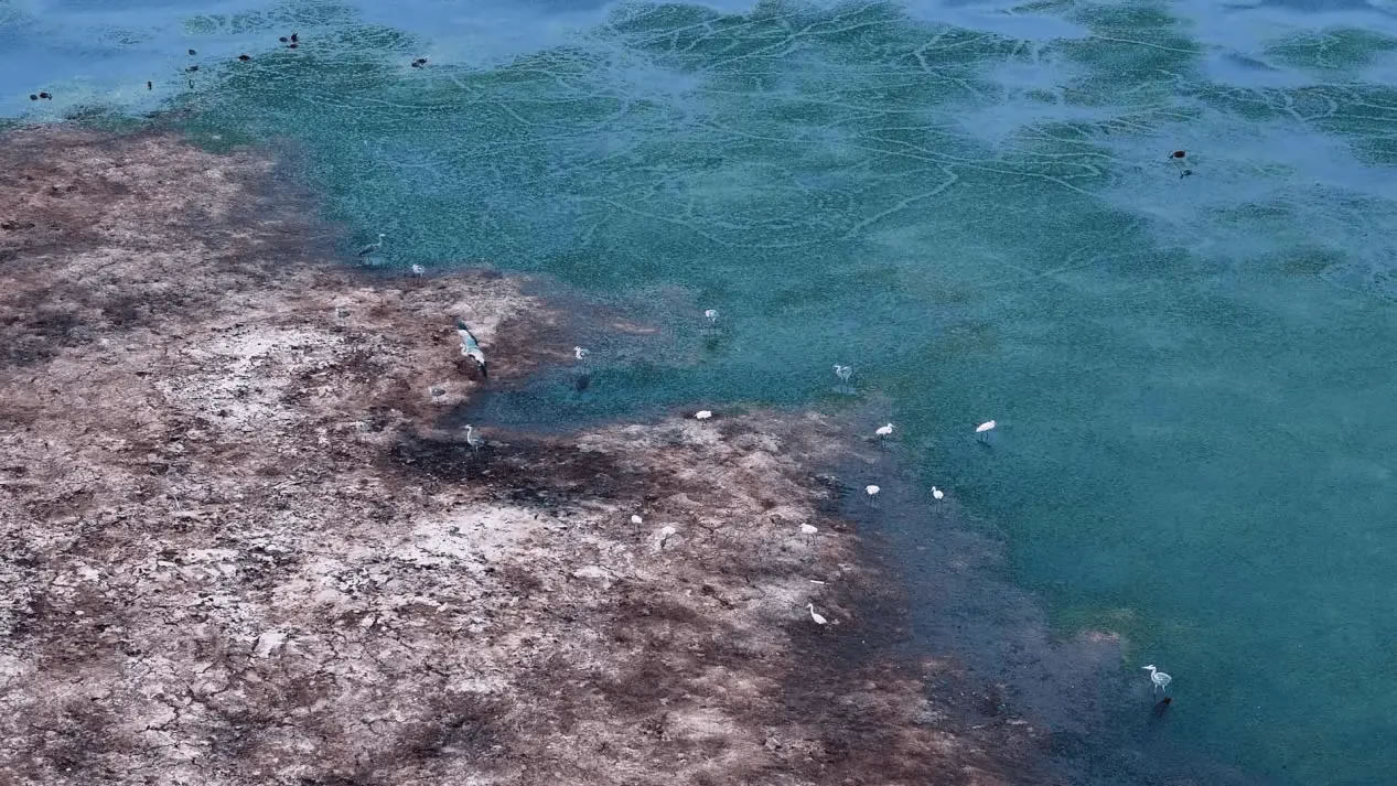 陽(yáng)光灑落時(shí),湖水清澈見(jiàn)底,魚(yú)兒在水中自在游弋,與岸邊景致構(gòu)成絕佳畫面。此外,黑翅長(zhǎng)腳鷸也不時(shí)現(xiàn)身灘涂,為這幅生態(tài)圖景再添一抹靈動(dòng)色彩。