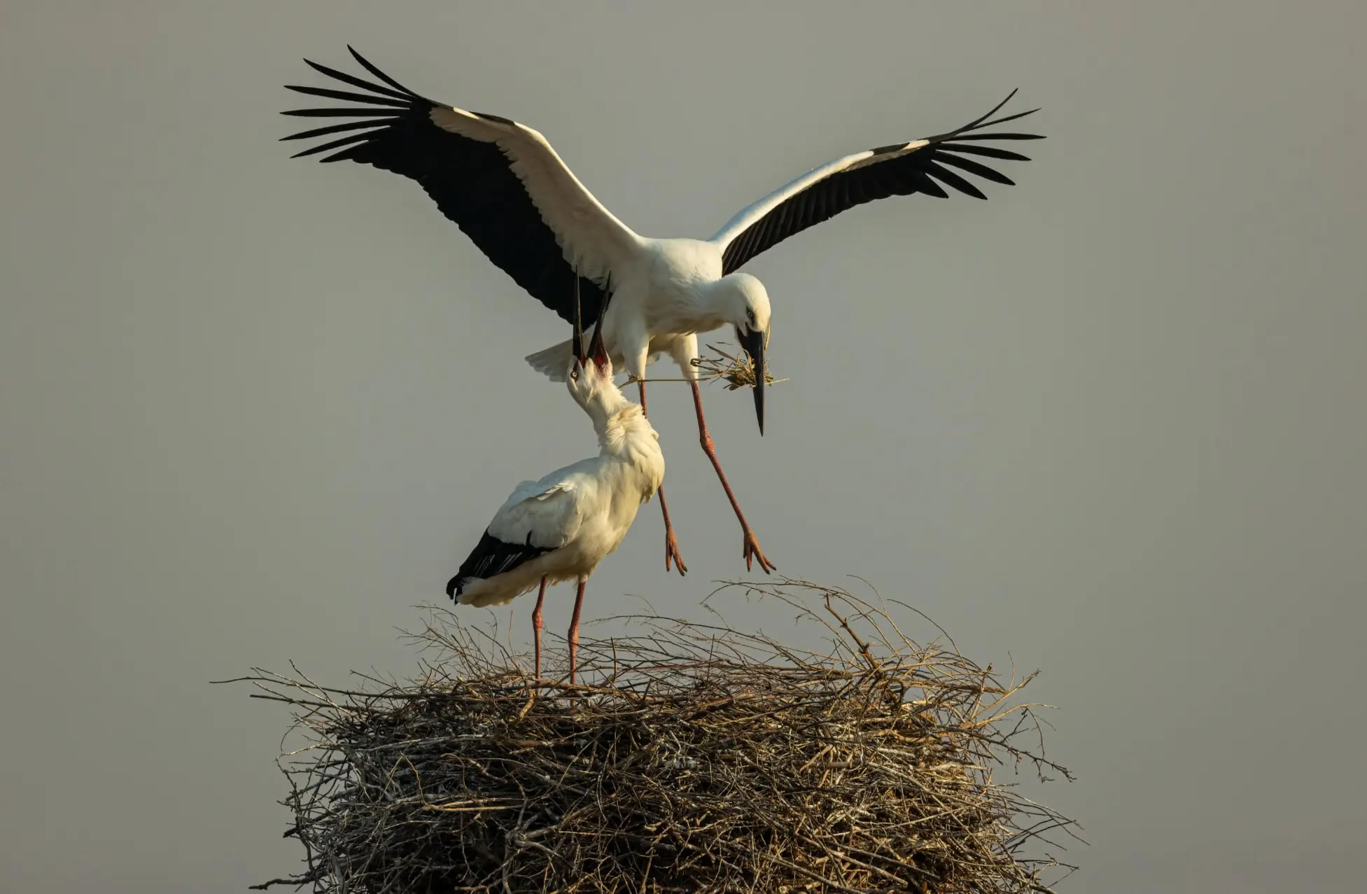 銜枝筑巢的東方白鸛(國家林業(yè)和草原局供圖)