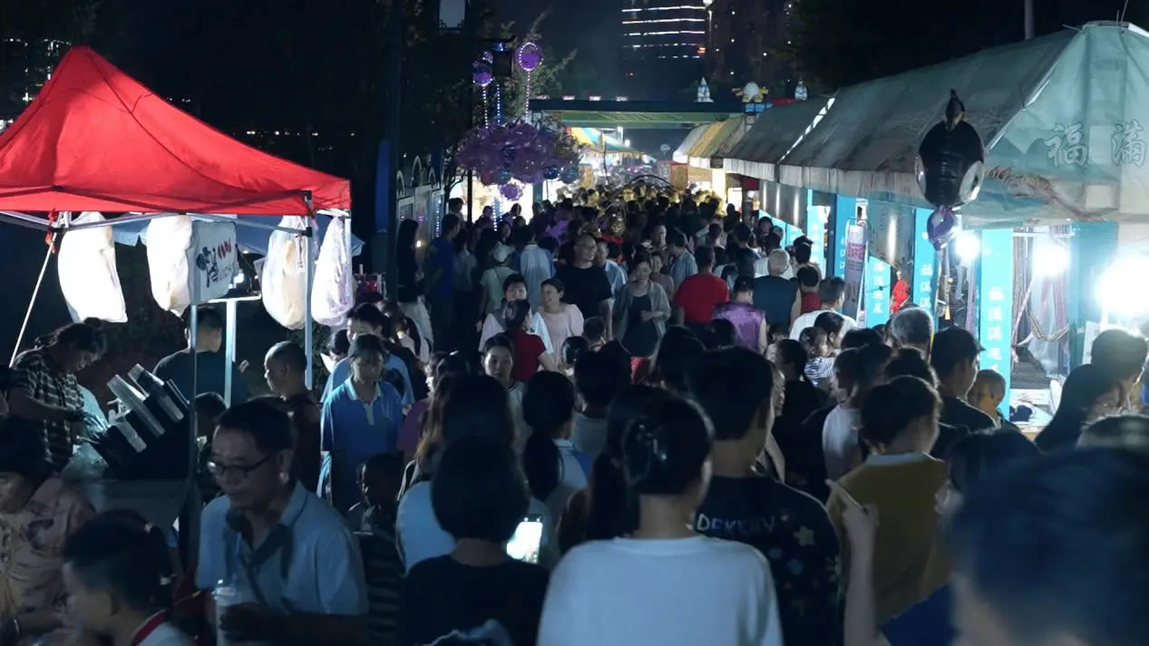 活動現(xiàn)場,產品展銷、非遺展演、親子游樂、特色美食四大板塊同步開啟,非遺火壺、浪漫銀河冷焰瀑布秀、非遺打鐵花等輪番上演;顒邮淄肀阄忻裼慰统5000人次,叫賣聲、音樂聲交織,摩肩接踵的人群中涌動著消費熱潮。