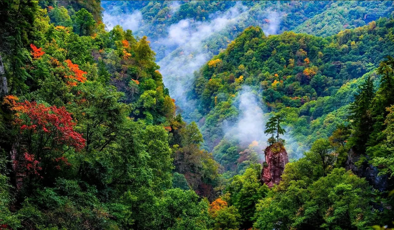 山河入秋,大地鎏金。走進(jìn)國家級(jí)風(fēng)景名勝區(qū)甘肅華亭關(guān)山蓮花臺(tái),仿佛走進(jìn)了五顏六色的童話世界——層林盡染,五彩繽紛,秋意在這里揮灑得淋漓盡致。空氣中浮動(dòng)著泥土的溫潤與草木的清香,山間那些不知名的野花依然開得爛漫,如散落的星辰點(diǎn)綴林間。