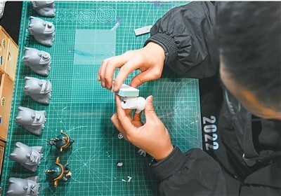 一名文創(chuàng)產(chǎn)品策劃運(yùn)營(yíng)師在打磨產(chǎn)品模型。