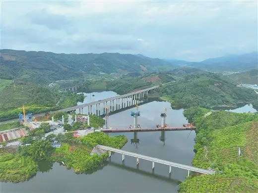 2025年10月,建設中的那蒙澄碧河特大橋橋墩拔地而起(施懿宸 何春龍 攝)
