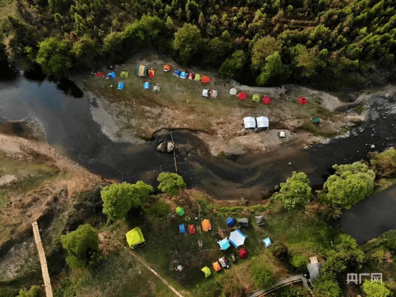 夜幕降臨,星空露營(yíng)與音樂會(huì)將活動(dòng)氣氛推向高潮。400余頂帳篷點(diǎn)綴湖畔,民族音樂與現(xiàn)代旋律交織,游客在輕松愉悅的氛圍中感受德宏的自然之美與人文溫度。