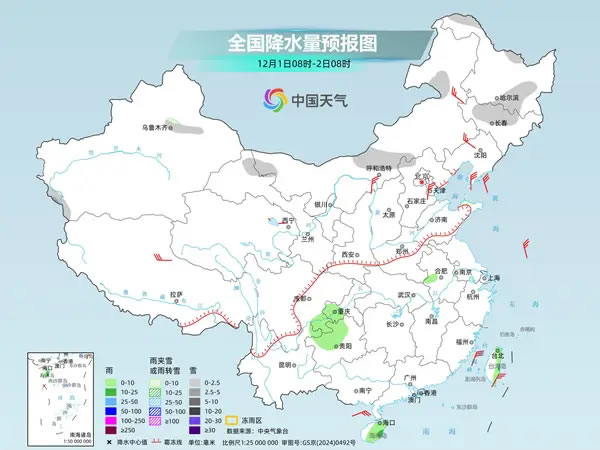 明天,內(nèi)蒙古、黑龍江北部和南部、吉林北部、新疆沿天山地區(qū)及南疆盆地西部山區(qū)、甘肅河西、河北北部等地部分地區(qū)有小到中雪或雨夾雪。四川東南部、重慶西部、貴州西北部、安徽中部、海南島、臺灣島等地部分地區(qū)有小到中雨。